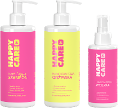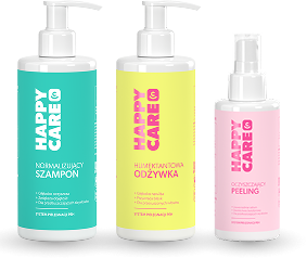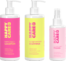 Efekt tafli? Wzmocnione końcówki? Mega objętość? Tak, tak, tak! Wszystko, czego potrzebujesz to odpowiednia pielęgnacja. Produkty Happy Care trafiają precyzyjnie w sedno problemu. Nawilżają, regenerują i wydobywają z włosów to, co najlepsze, dostarczając im dokładnie tego, czego im brakuje. W efekcie włosy wyglądają zdrowo, świeżo i promiennie.