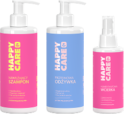 Efekt tafli? Wzmocnione końcówki? Mega objętość? Tak, tak, tak! Wszystko, czego potrzebujesz to odpowiednia pielęgnacja. Produkty Happy Care trafiają precyzyjnie w sedno problemu. Nawilżają, regenerują i wydobywają z włosów to, co najlepsze, dostarczając im dokładnie tego, czego im brakuje. W efekcie włosy wyglądają zdrowo, świeżo i promiennie.